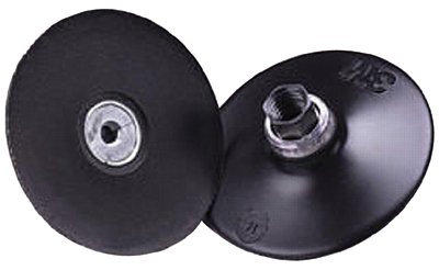 Designed to support 3M(TM) Roloc(TM) 4 inch diameter abrasive discs. Thread allows it to be mounted directly to tools with 5/8-11 EXT threaded shafts. Large hex nut (11/16 inch hex)