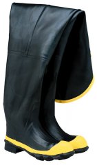 The 31" Hip Boot is made of premium 100% waterproof heavy-duty natural, hand-crafted rubber. The following features offer your workers comfort and safety: steel shank for arch support, cushioning rubber sponge insole and insulated foam rubber bottom with 8mm wool felt mid-sole for warmth, durable cotton/canvas lining and tractor tread outsole. Safety toe and steel mid-sole meet or exceed ANSI Z91 PR91 1/75 C/75. Please specify size when ordering. Sold by the pair.