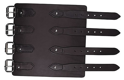 Made from top grain cordovan brown leather, it is sewn and riveted for the strength necessary to avoid a potential crisis. It fastens quickly with four straps and roller buckles.