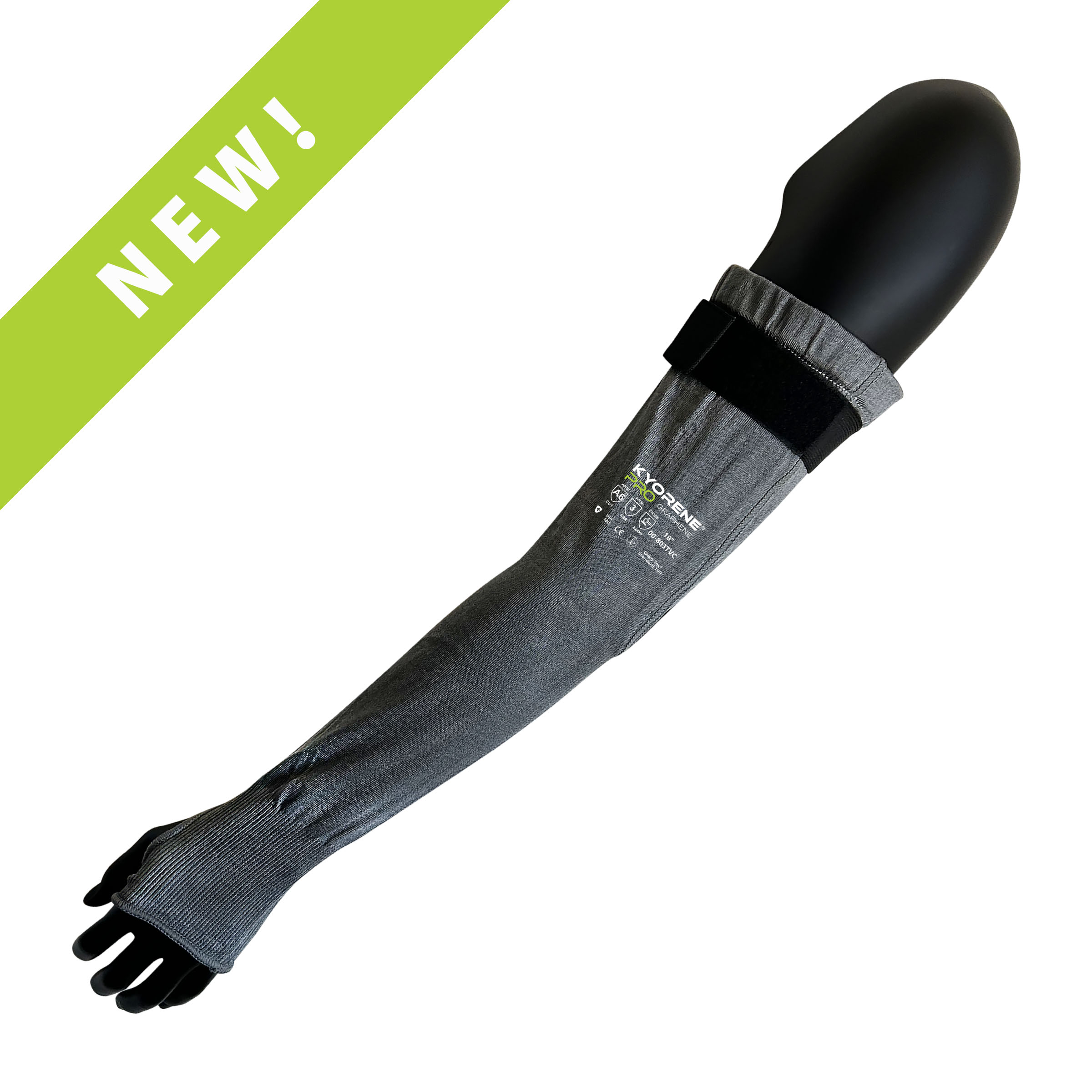 18'' 18g Gray Kyorene Pro® Sleeve With Thumbhole, V slot and Elastic Velcro, ANSI A6. This sleeve is Silicone free, No stainless steel or fiberglass, Bacteriostatic kills harmful bacteria, Thermal regulating to keep the hands comfortable, and Odor neutralizing to keep the sleeves smelling fresh. Can be used in Appliance Manufacturing, Automotive Manufacturing, HVAC/Sheet Metal, Construction, and Steel Handling applications