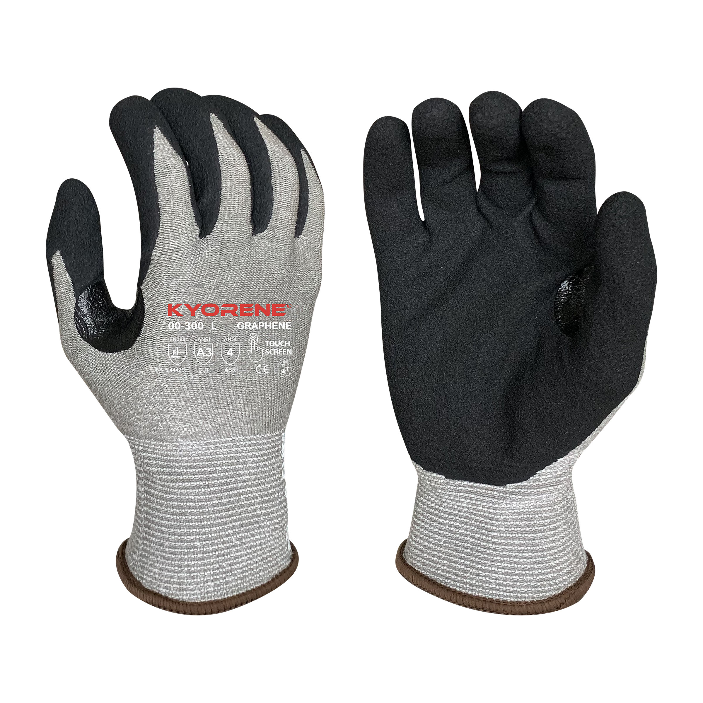 13g Gray Kyorene® Liner With Black HCT® Micro Foam Nitrile Palm Coating And Reinforced Thumb Crotch, ANSI A3, Touchscreen compatible, thermal regulating, and odor neutralizing. Can be used in Automotive Manufacturing, Appliance Manufacturing, Metal Stamping, Sheet Metal Handling and Construction applications