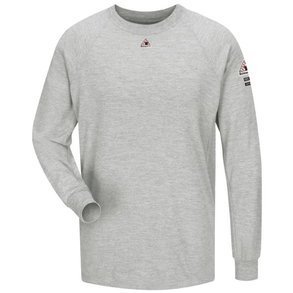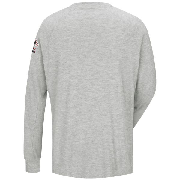 Full side seam gusset, Rib knit collar, Rib knit cuffs, Raglan sleeves for ease of movement, Tagless brand label and warning label, This flame-resistant garment meets the requirements of NFPA 2112, Standard on Flame-Resistant Garments for Protection of In. Flame-resistant, 6.5 oz. (220 g/m²) 45% Modacrylic / 35% Lyocell / 20% Aramid with moisture management finish. Industrial Wash. Arc Rating EBT 8.2 calories/cm².