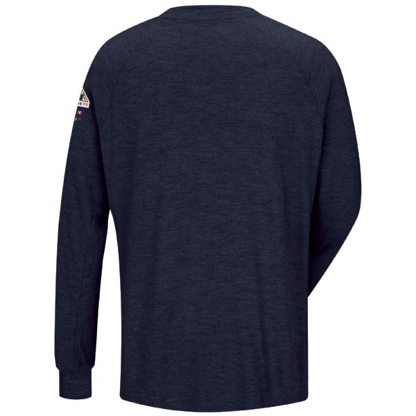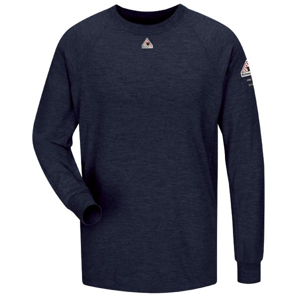 Full side seam gusset, Rib knit collar, Rib knit cuffs, Raglan sleeves for ease of movement, Tagless brand label and warning label, This flame-resistant garment meets the requirements of NFPA 2112, Standard on Flame-Resistant Garments for Protection of In. Flame-resistant, 6.5 oz. (220 g/m²) 45% Modacrylic / 35% Lyocell / 20% Aramid with moisture management finish. Industrial Wash. Arc Rating EBT 8.2 calories/cm².