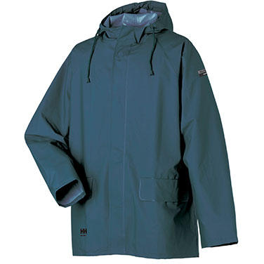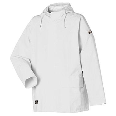 Features: Chemical and mildew resistant, Drawcord hood, 2 hand pockets, Storm flap with snap closure, and Microwave welded seams. Available in sizes S-4X.