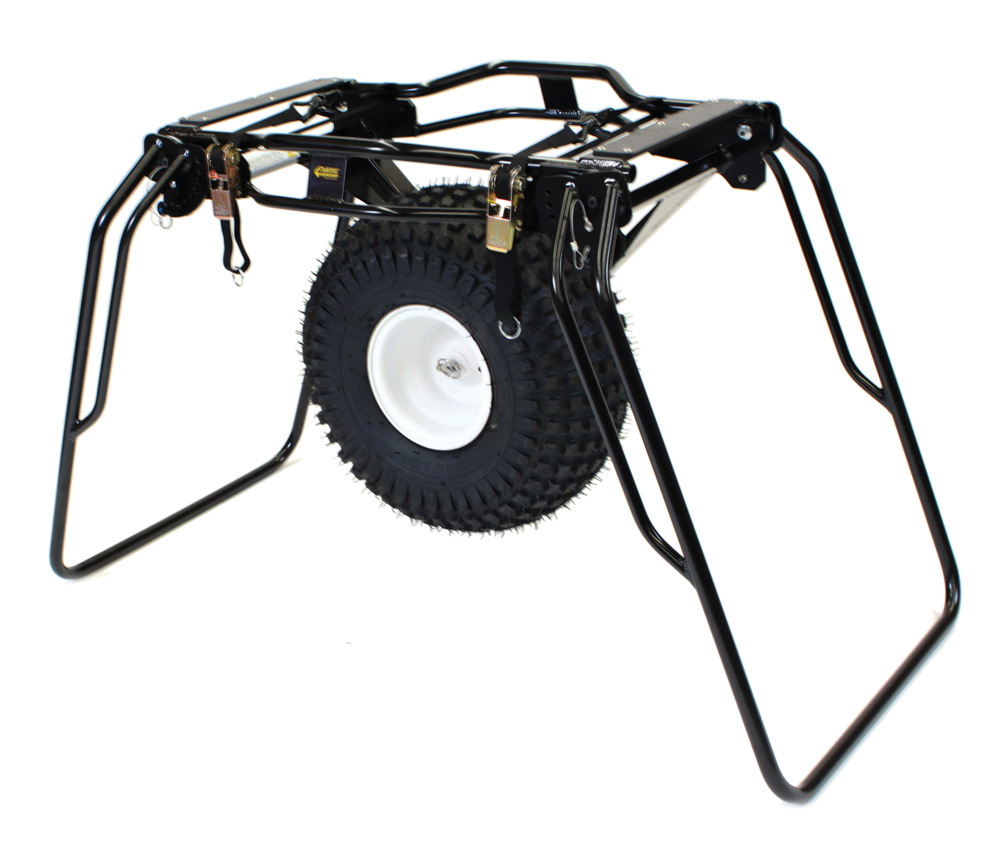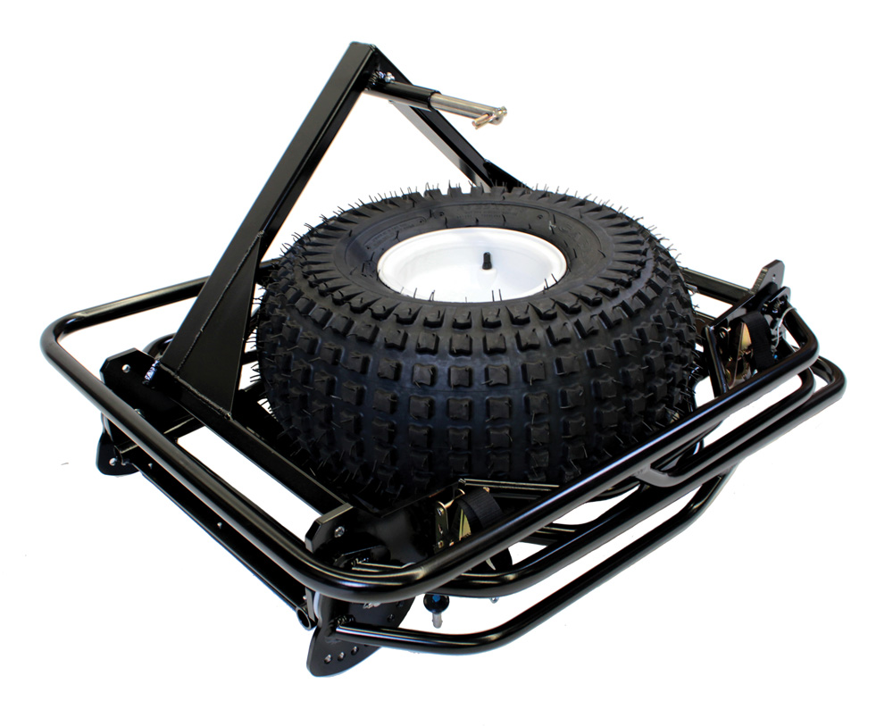 Greater Leverage and Easy Transport. With a large, lightweight all-terrain wheel, a fast, simple securing system, and eight adjustable handle positions, the Mule II Litter Wheel is an excellent all-purpose transport solution. The universal design is compatible with any type and style of rigid litter. Its single wheel design makes it ideal for narrow trails, allowing agility, versatility and ease of movement even in the roughest terrain. The ATV wheel offers tracking ability and shock absorption for smooth and comfortable patient transport. Fast ratchet securing system locks basket stretcher with two straps and two rubberized steel hooks. Quick-release pins, each with a wire lanyard, lock into position with ease on each side of the handle. Its unique uni-support design allows the wheel to be quickly and easily removed for compact storage and transport.