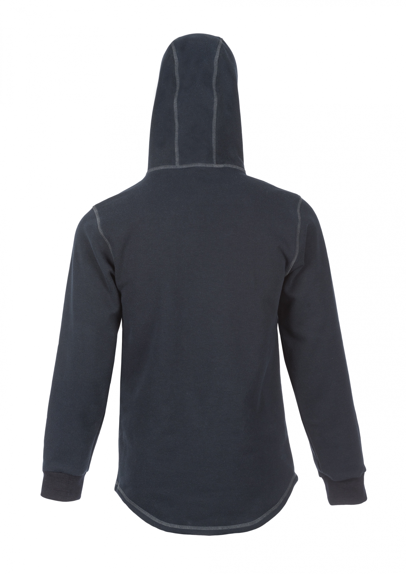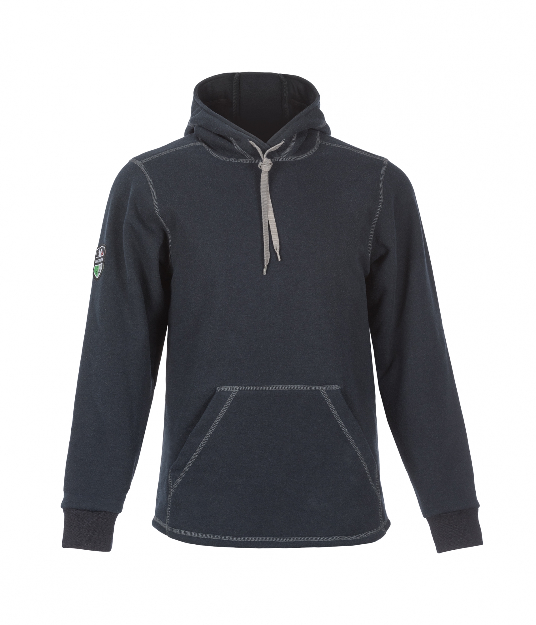 *Navy* Developed to provide superior comfort and freedom of movement in non-stop work environments, this 4-way-stretch hoodie is an ideal mid-layer or outerwear garment for the demands of any season. Ride out hazardous weather in comfort and style wearing our NEW Elements™ Cyclone Pull-Over Hoodie. Constructed from DragonWear® Inherent Tri-Blend Elements™ FR Fabric, a wind-repelling outer surface and durable water-resistant finish guards against fierce weather. Developed to provide superior comfort and freedom of movement in non-stop work environments, this 4-way-stretch hoodie is an ideal mid-layer or outerwear garment for the demands of any season. Functionality and useful design stay at the top of the list with a 3-panel, hard-hat friendly hood design that can be adjusted to ensure unobstructed peripheral vision, a hidden cell phone pocket inside the front Kangaroo pocket, and extra-long sleeves with knit cuffs that prevent wind gusts up the arm. This powerhouse hoodie levels up with advanced air permeability technology for a true comfort experience in the windiest of environments. When the wind blows, you won’t be afraid to howl back in our Elements™ Cyclone Pull-Over Hoodie. Features: Inherently fire and arc-resistant, Superior wind-repellent with durable water-resistant finish, 4-way-stretch fabric provides superior comfort and freedom of movement, 3-panel, hard-hat friendly hood design with draw cord for adjustment, Multiple pockets- including hidden cell phone pocket, Drop tail rear hem to provide extra coverage, Extra-long sleeves with knit cuffs that prevent wind gusts up the arm, Modern fit with contrast stitching for style, Ideal mid-layer or outerwear piece for the demands of any season, Made in the USA. Materials: DragonWear® Inherent Tri-Blend FR Fabric; 12 oz/sq y. CAT 3, Arc Rating 28 cal/cm2. NFPA 70E (Standard for Electricity Safety in the Workplace). NFPA 2112 (Standard on Flame-Resistant Garments for Protection of Industrial Personnel Against Flash Fire).