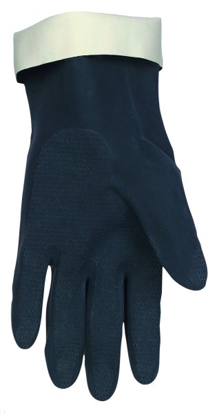 This flock-lined, 30 mil thickness glove has straight cuffs and a 12 “ length with embossing on palm and fingers for a sure , firm grip. The component materials comply with FDA regulations for food contact. Applications include--handling automotive parts, metal cleaning and mechanical applications.
