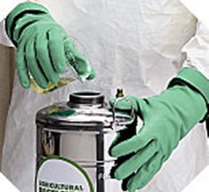 Nitrile Latex Gloves Tractor-tread finish gives you an iron grip. Reduce fatigue and enhance comfort with this 15 mil, ergonomically designed glove. Combines the chemical resistance of nitrile with the flexibility of natural rubber. Tractor-tread grip is great in wet or dry situations and helps channel away hazardous chemicals. 13" length, gloves are ideal for food processing, manufacturing, paint mixing, chemical processing and laboratory applications. Sold per dozen pair. Please specify size when ordering.