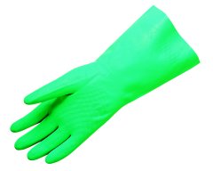 Get superior durability and chemical resistance with this tough nitrile glove. Double dipped nitrile compound, with no fillers, provides excellent resistance to chemical penetration, punctures, cuts, snags and abrasion. Unsupported flock lining ensures good flexibility, absorbs perspiration and allows easy on-and-off. Ergonomically designed with curved fingers and tapered wrist for a comfortable fit. Sizes 7 - 10. 13" Long. Unlined 11 Mil Flock Lined 15 Mil. Please specify size when ordering. Sold per dozen pair.