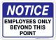 NOTICE EMPLOYEES ONLY BEYOND THIS POINT - Post notice that only employees are permitted beyond a given point. Ensure only workers enter into a specific location. Always properly mark areas that have restricted access. Traditional OSHA-style signs, tags and labels are the most widely recognized design format in the industry. Notice header indicates information considered to be important but not hazard-related.