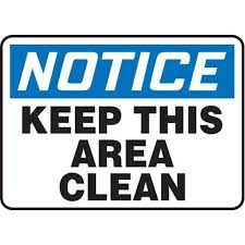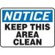 NOTICE KEEP THIS AREA CLEAN - Instruct employees to keep a designated area clean to maintain a safe work environment. Post this notice in areas where cleanliness is important to safety. Prevent buildup of dirt or debris that could hide safety issues or create obstructions. Traditional OSHA-style signs, tags and labels are the most widely recognized design format in the industry. Notice header indicates information considered to be important but not hazard-related.