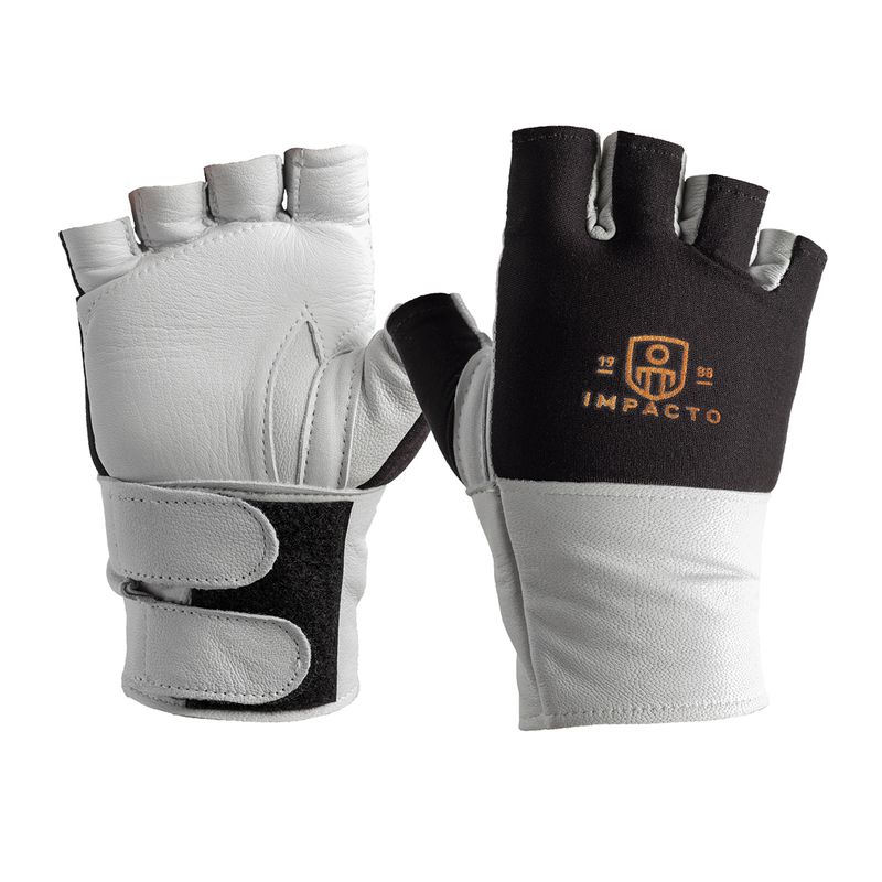 Impacto anti-impact Gloves. Nylon back with soft pearl leather palm ensure outstanding dexterity and comfort. Impact absorbing visco-elastic polymer VEP padding in the palm. Adjustable hook and loop wrist closure. Provides protection from impact, shock and abrasion. Used with electric and hand tools or for general work, warehousing and sport
