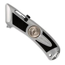 PHC® Metal QBAR has a Smart Auto-Retract pressure sensitive blade that instantly retracts into the cutter once the blade loses contact with the cutting surface. In addition. The QBAR features a metal bladeless tape splitter, which allows users to open boxes without even utilizing a blade. The unique integrated hinge design and easy-open dial make for a super convenient, tool-free blade change. The unique 3-button design makes cutting the top or the side of boxes ergonomically efficient and comfortable, for both right- and left-handed users. This rugged universal cutting tool reduces costly razor blade injuries and makes cutting safe, easy and comfortable. Includes one SB-92 Safety Point Blade and holds 5 additional blades.