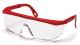 Built-in rubber nose piece. Rubber temple tips. Ventilated, straight-back flexible temples. Scratch resistant polycarbonate lens provides 99% UVA/B/C protection. Includes black lanyard cord 12/bx