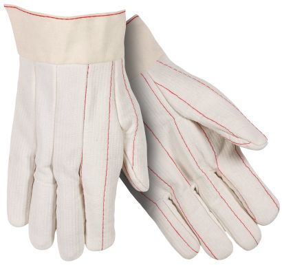 Heavy weight, corded poly/cotton outer, non-woven liner, bandtop cuff. Available in a safety cuff. Available in extra large.