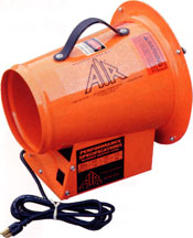 Air systems manufactures a combination ventilation fan and duct storage unit to meet the most demanding customer needs. The rugged polyethylene duct cannister is securely attached to one of our rugged lightweight fans to make an ideal ventilator for the customer who wants a one piece ventilation system. The AC version, SVF-8AC, has a 1/3 HP -115 VAC, an 8” diameter outlet and 1395 cfm free air.
