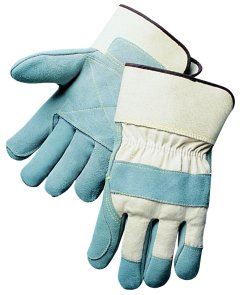 Gunn pattern premium split leather with extra layer of leather on the palm and index finger for extra protection and durability. Made with a heavy weight white canvas back and a knuckle strap. Sewn with Kevlar® thread. Available in a 2 3/4” safety cuff. Also available with double leather palm, fingers, and reinforced thumb with a 2 3/4” safety cuff. Men’s size. Sold per dozen pair.