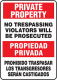 PRIVATE PROPERTY NO TRESPASSING VIOLATORS WILL BE PROSECUTED (ENGLISH, SPANISH) - Warn violators they will be prosecuted when trespassing on private property. Restrict access to private property in multiple languages. Our Dura-Fiberglass™ material is ideal for harsh indoor and outdoor industrial strength applications. Bilingual signs help protect all your workers.