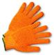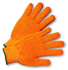 Orange Polyester string knit with honeycomb grip pattern coating. Four sizes available. Sold per dozen pair.