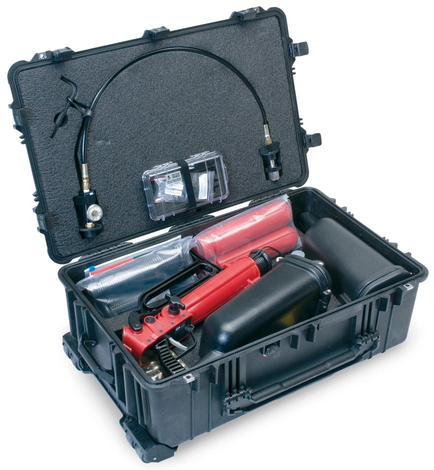 The molded interior of the ResQmax Complete Kit Pelican Case will also hold one additional projectile of any type, one filler hose assembly adapter, a ResQmax Tool Kit and up to 3 additional Pack-of-5 consumables. Additional ResQmax™ products are available by special order.