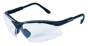 This style of safety eyewear has 5-position ratchet plus 4-position telescoping temples for superior fit. The soft, non-slip rubber nosepiece offers long wear comfort. All lenses are hard coated. All lenses provide 99.9% UVA and UVB protection. Ventilation channel between lens and frame offer excellent worker all-day comfort. Complies with ANSI Z87.1-1989 and CSA Z94.3-1992 Standards. Sold by the pair.