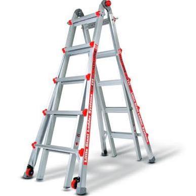 The Little Giant Revolution is constructed of a special alloy that makes it 20% lighter than any comparable industrial-rated ladder. The Revolution also includes several innovative new features such as the Quad-Lock™ hinge and the easy-to-use Rock Locks for quick adjustment. The Revolution can be used in up to 43* unique configurations as an A-frame, extension, staircase and 90-degree ladder, and as a trestle-and-plank scaffolding system. The Revolution’s wide-flared legs and aerospace-grade aluminum construction provide an unmatched feeling of safety and stability. The Little Giant Revolution is rated to hold 300 pounds on both sides and is a true two-person ladder. All Models: Storage Depth (8") and Rung Width (3.5"). Freight not included