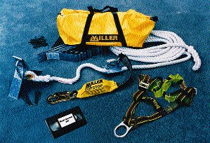 Roofing kits from Miller are easy to install and can be used on either steep pitched or flat surfaced roofs. Kits are complete and ready to use for one person. Each kit comes with model E850/UGN DuraFlex harness, steel twist lock carabiner, manual stainless steel rope grab with 2ft. web lanyard with shock absorber, nylon rope, and carrying bag. RA10 kit comes with 12 single use anchor with hardware and RA20 kit comes with 2 reusable anchors with hardware.