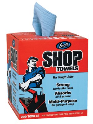 Ideal for changing oil refilling fluids and general maintenance. Strong absorbent towel is great for wiping hands tools and cleaning up grease oil grime and fluids. Works when wet. Built-in handle allows you to take the box on the job while keeping rags clean