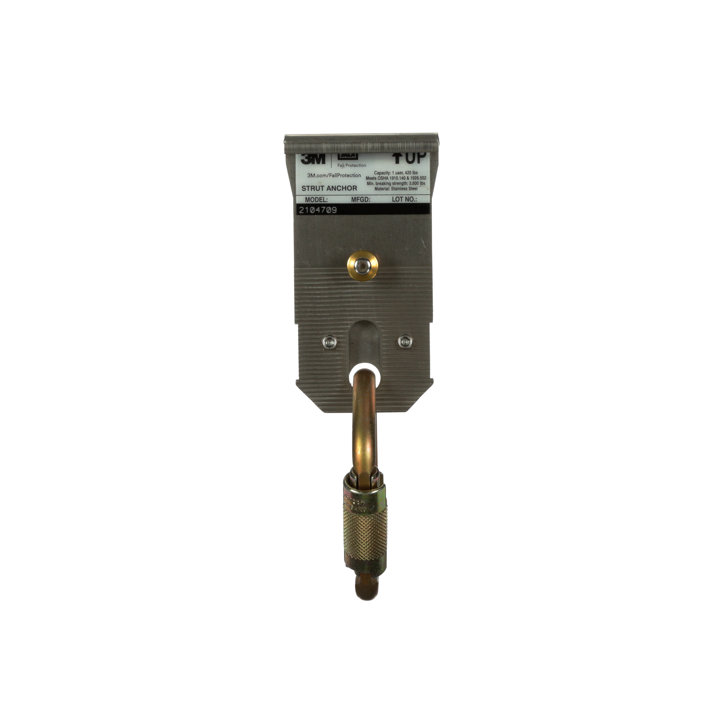 Allows for one step, one hand installation. One-piece design is simple, lightweight and compact. Accommodates 1-5/8" (4.1cm) wide strut. Includes visual indicator that anchorage is installed correctly and ready for use (Reflective tape visible from ground level with artificial light source). Rugged and corrosion resistant stainless steel. 3M™ DBI-SALA®Saflok™ included. The 3M™ DBI-SALA® Strut Anchor is a compact, high strength anchor, easily installed in a single step providing an overhead fall arrest anchor point on strut material as wide as 1-5/8” (4.1cm). Includes visual indicator that anchorage is installed correctly and ready for use (Reflective tape visible from ground level with artificial light source). Includes 3M™ DBI-SALA® Saflok™ Carabiner. The 3M™ DBI-SALA® Strut Anchor is a compact, high strength anchor, easily installed in a single step providing an overhead fall arrest anchor point on strut material as wide as 1-5/8” (4.1cm). Includes visual indicator that anchorage is installed correctly and ready for use (Reflective tape visible from ground level with artificial light source). Includes 3M™ DBI-SALA® Saflok™ Carabiner. Our anchorage connectors are built from using high strength and durable materials designed to stand up to tough environments. Anchorage connectors are critical components used in fall protection. They securely attach your personal fall protection system to the anchorage point. Proper selection of the anchorage connector depends on the type of work being performed. These anchorage connectors can be fixed, mobile, permanent or portable.