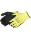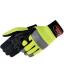 Super reflective strips on palm. Quick slip-on Design. Bright, highly visible chartreuse color. Great flexibility.