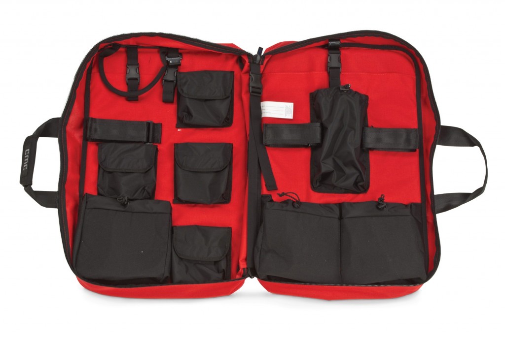 Made of tough 1,000-denier CORDURA® nylon with padded sides, the Truck Cache holds all the rigging hardware needed to set up a main line and a belay in a fold-open case that fits efficiently in a truck compartment. Our redesign includes improvements for organizing either MPD™ or traditional rescue systems. The Cache looks like a briefcase but has hide-away shoulder straps so it can be carried as a backpack. The Cache also can be folded open on the ground or hung from the side of the vehicle with integrated gutter hooks. Pockets and hook-and-loop straps hold anchor plates, pulleys for mechanical advantage systems, brake rack for lowering, load release straps, Prusik cords, and carabiners. A quickrelease strap down the center holds an XL Edge Pad, which also protects the hardware when closing the bag. A back compartment secures Ultra-Pro™ Edge Protectors. Contents sold separately.