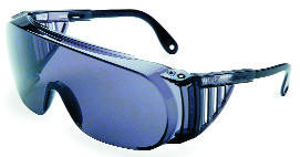 Economical ANSI and CSA approved eyewear this ideal visitor spec has an uncoated 100% polycarbonate wrap around unilens design. It is available in regular and over-the-glass unilens designs. The lightweight over-the-glass model fits over most Rx eyewear and features adjustable Duoflex® cushioned temples. Meets ANSI Z87+ and CSA Z94.3 standards. Made in the USA. Sold per pair.