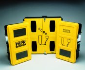 Allegro® wall cases protect respirators against damaging plant environments. They are made of corrosion resistant ABS with ultraviolet inhibitors. Nonmetallic hinges and latches prevent rust while a rubber door seal protects equipment from dust and moisture. The Deluxe Case comes with shelf and single SCBA cylinder bracket. The Standard Case offers the same large capacity, without shelf or bracket. The Emergency Respirator Case will hold up to two 5- or 10-minute EBAs, and the Respirator Storage Case is perfect for storing APRs and cartridges. Call for dimensions.