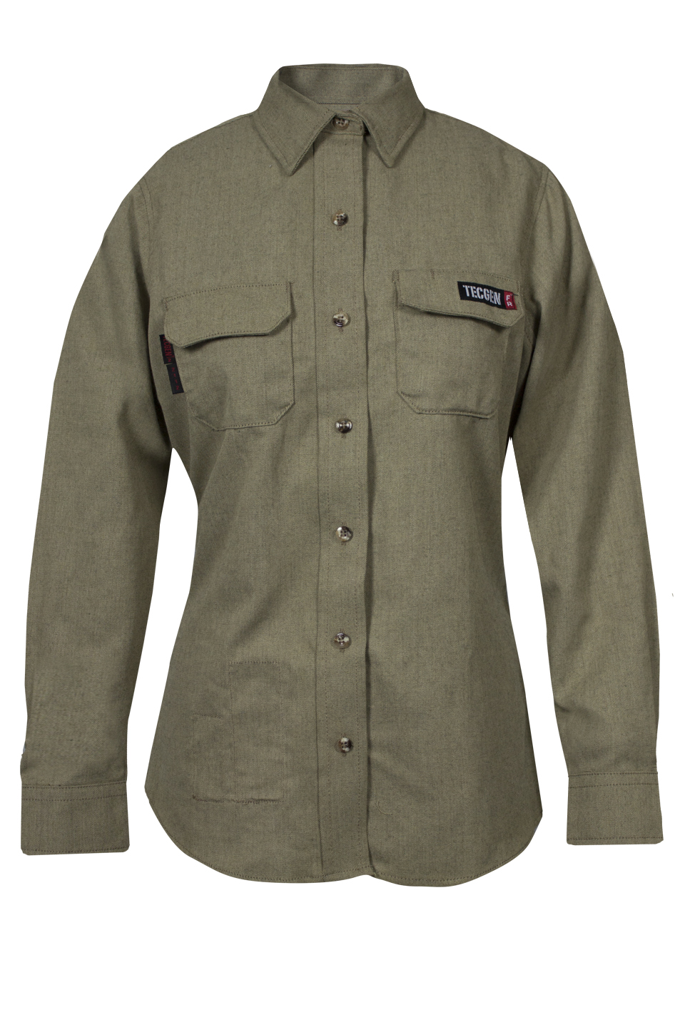 5.5 oz. Khaki TECGEN FR Long Sleeve Women's Work Shirt (Arc Rating = 8 cal/cm²) , size MD