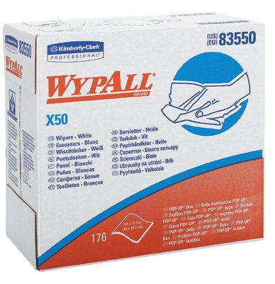 9.1" X 12.5" X50 Wiper Pop-Up-Box White 176/Bx 10 Bx/Cs