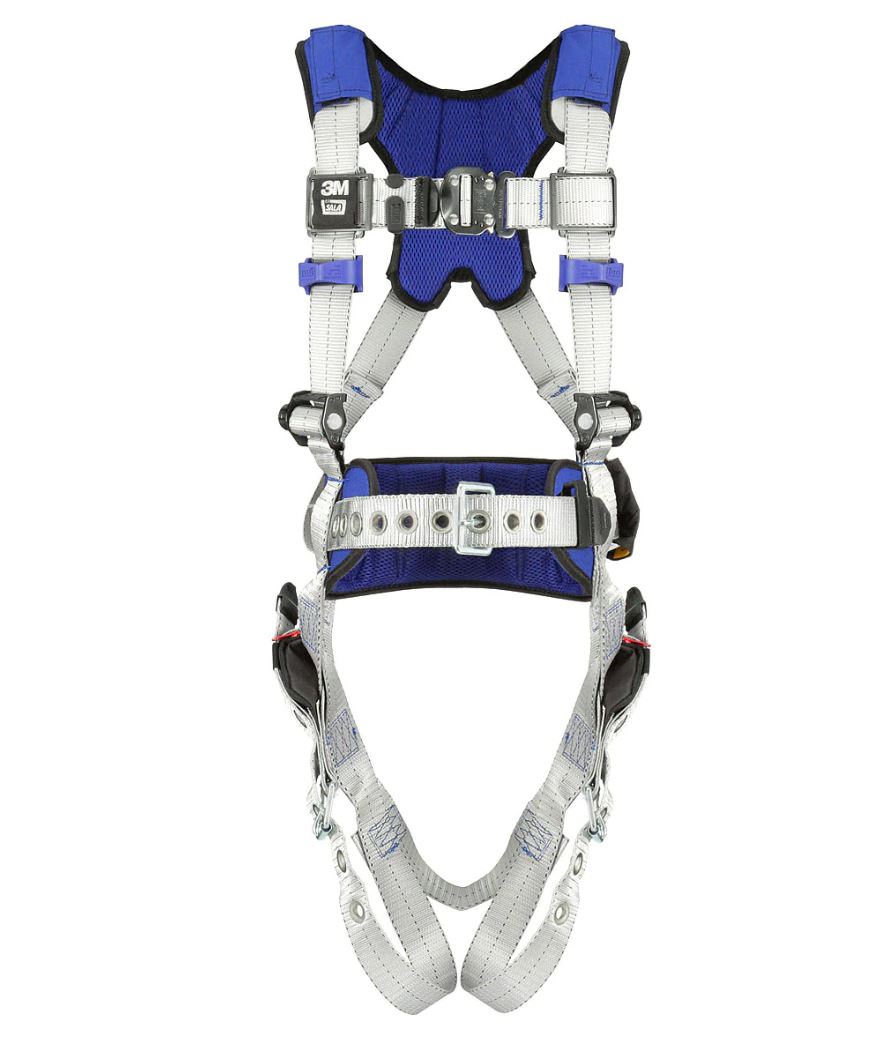 The 3M™ DBI-SALA® ExoFit™ X100 is designed with high-quality components that have been developed to enhance the harnesses safety and comfort while working at height on your job site. The X100 comfort harness is built with 6,000lb polyester webbing, nylon/polyester hybrid comfort padding and robust alloy steel hardware. The anti-slide back D-ring plate design helps reduce dorsal D-ring slide and enables a convenient adapter location to connect personal SRLs. Select configurations are also available with exclusive weight distribution systems to help reduce shoulder strain and fatigue.